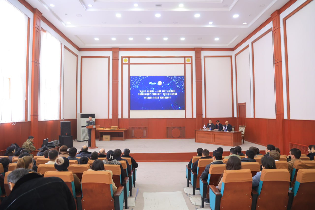 As part of the visit of Urgench State University students to Military Unit No. 53008 in the city of Urgench, they also participated in a spiritual and educational event organized in cooperation with the Khorezm Regional Council of the People’s Democratic Party of Uzbekistan (PDPU). The event was attended and addressed by the Deputy Chairman of the Khorezm Regional Council of the PDPU, U. Qochqarov, a group of party representatives, the Chairman of the University Tutors’ Council, retired Major R. Matchanov, as well as staff members of the Youth Affairs Agency.