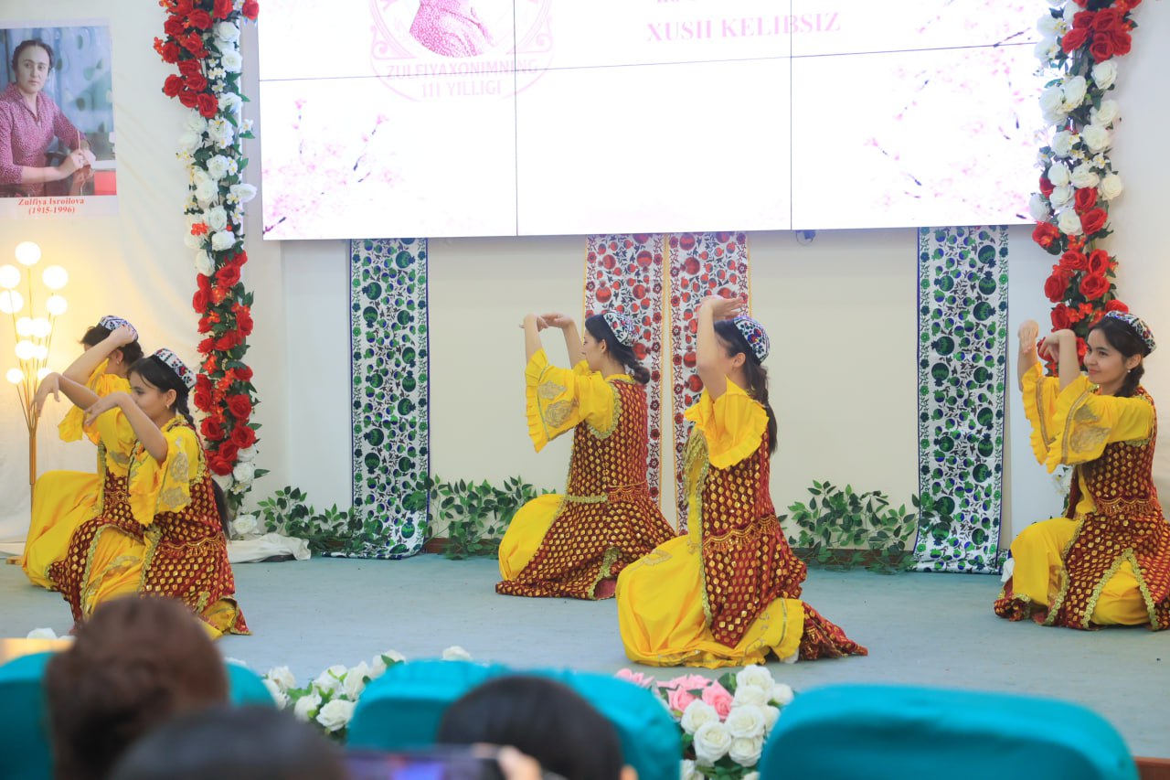 During the event, students from group 242 of the “Philology and Language Teaching: Uzbek Language” program performed musical pieces, graceful dances, and stage performances, which created a festive atmosphere for the audience. Each artistic performance reflected the spiritual world of Zulfiya Isroilova’s work and revealed the richness of her literary heritage.