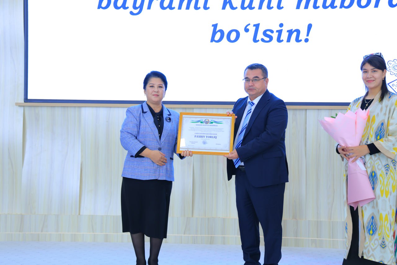 Furthermore, a group of professors and teachers were awarded honorary certificates from the Governor of Khorezm Region and commemorative gifts for their dedicated efforts in promoting the role of the Uzbek language in society, ensuring the full implementation of the state language, and contributing to the field of linguistics.